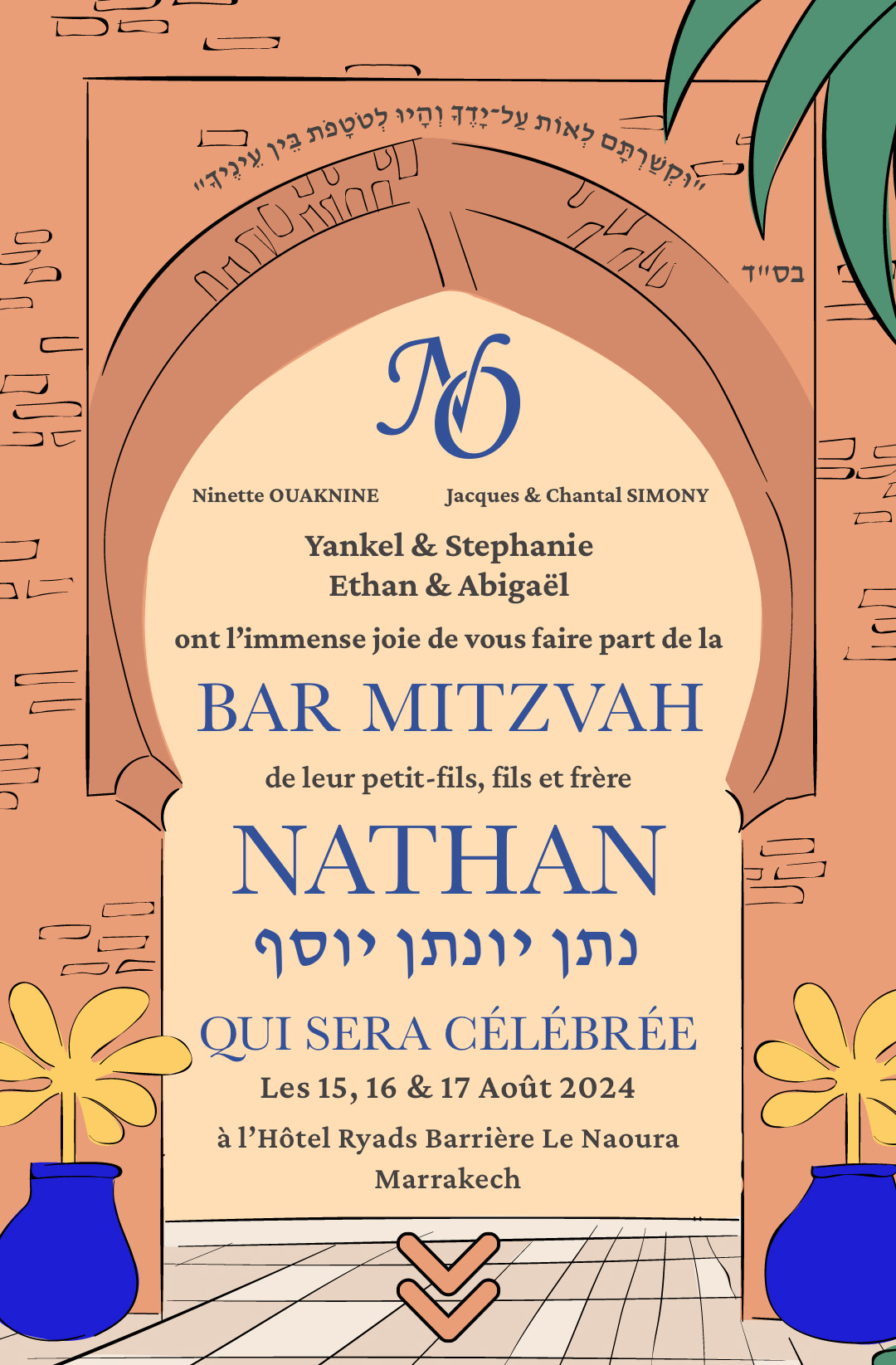 Nathan lira la ParachaVaet'Hanane ואתחנן Jeudi 15 Août 2024à 9h00Dans la salle Paris L'office sera suivid'un Brunch au Ryad Naoura